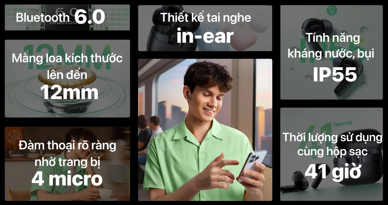 Bên cạnh đó, phiên bản còn có công nghệ ENC khử tiếng ồn môi trường thông minh. Theo đó, ENC sử dụng thuật toán xử lý tín hiệu kỹ thuật số để loại bỏ tạp âm xung quanh, cho phép người nghe tập trung vào âm nhạc. Đồng thời, công nghệ này cũng giúp giữ chất lượng thoại rõ ràng trong môi trường ồn ào.