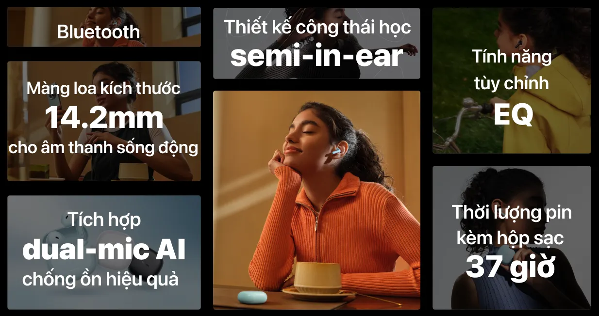 Nhờ thiết kế nhỏ gọn này, việc mang theo thiết bị trong các chuyến công tác hoặc đi chơi xa trở nên thuận tiện và nhẹ nhàng hơn. Ngoài ra, dòng tai nghe còn có nhiều màu sắc trẻ trung như đen, trắng và xanh, giúp người dùng thoải mái thể hiện cá tính riêng biệt.