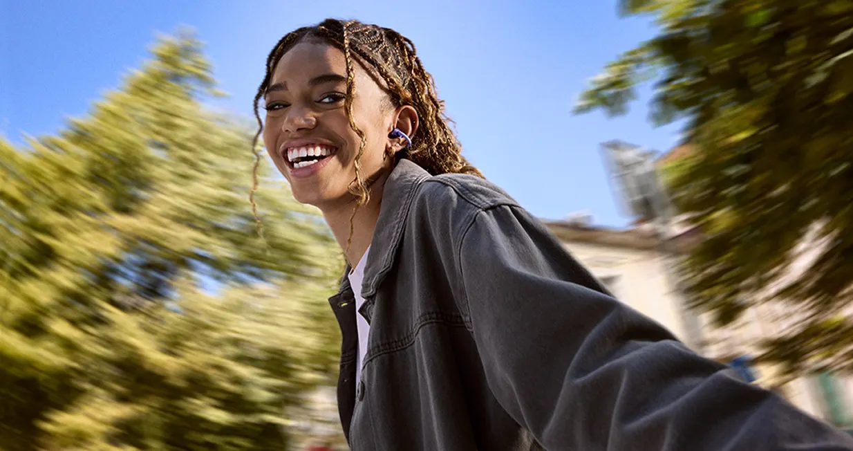 Mặt ngoài của Soundgear Clips có hiệu ứng bán trong suốt thời thượng và nhiều lựa chọn màu sắc trẻ trung. Thiết kế này không chỉ đáp ứng nhu cầu nghe mà còn đóng vai trò như phụ kiện thời trang, dễ phối cùng nhiều phong cách.