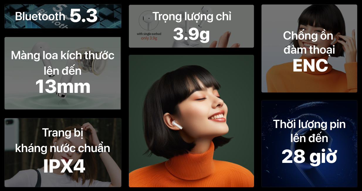 Tai nghe QCY Airlybuds Lite được trang bị Driver 13mm, mang đến âm thanh chi tiết và sống động, phù hợp cho nhu cầu giải trí và đàm thoại. Chuẩn Bluetooth 5.3 giúp tai nghe kết nối ổn định, giảm thiểu tình trạng gián đoạn khi sử dụng. Thời lượng pin lên đến 28h khi kết hợp cùng hộp sạc, đảm bảo trải nghiệm nghe nhạc suốt cả ngày.
