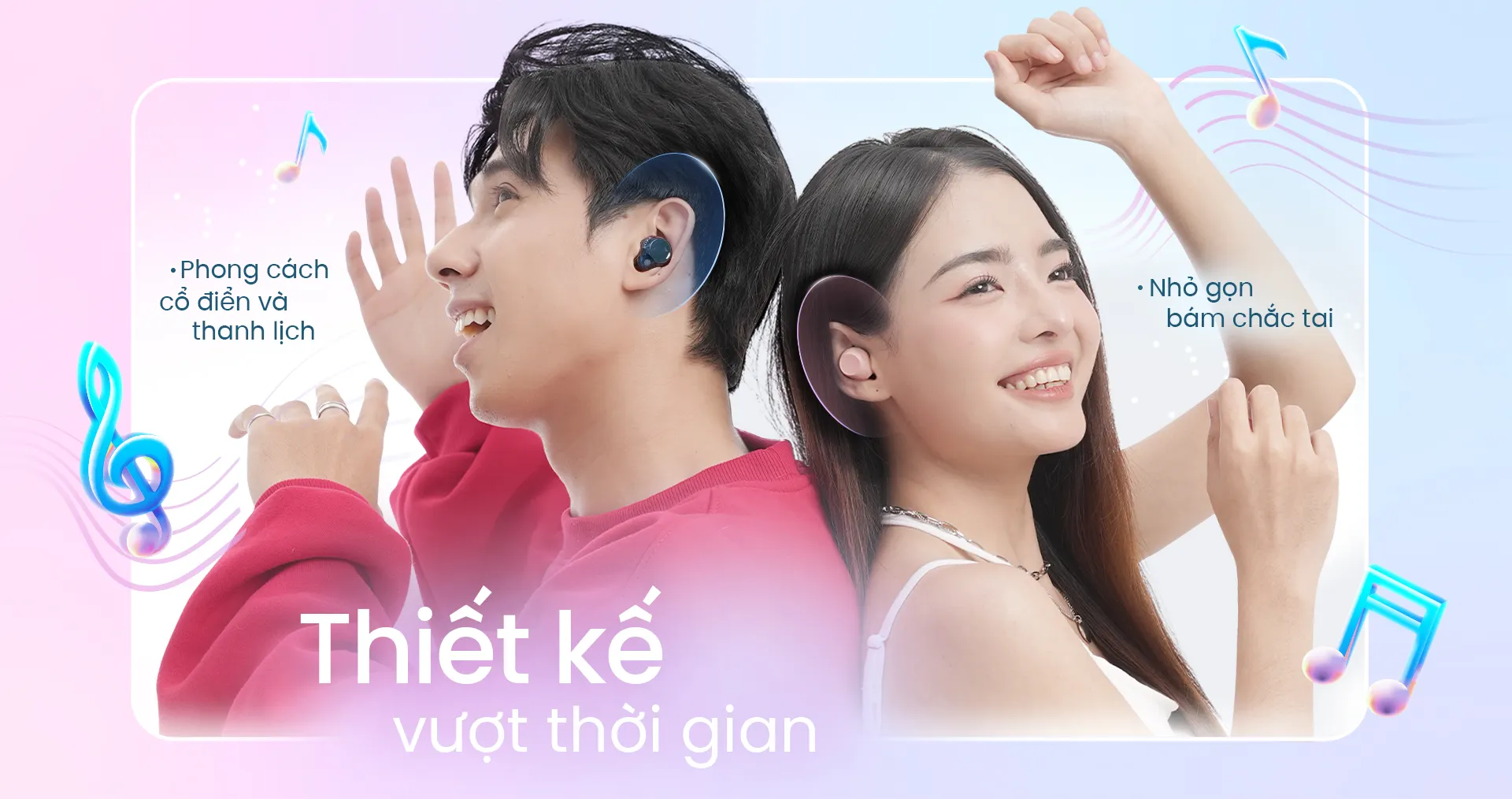 Một điểm đáng chú ý khác, tai nghe sở hữu khối lượng siêu nhẹ, chỉ khoảng 5.2g mỗi bên (bao gồm miếng đệm tai kích thước M), hỗ trợ sử dụng lâu dài mà không gây nặng nề. Hộp sạc đi kèm cũng có kiểu dáng nhỏ gọn với kiểu dáng hình trụ và các đường bo cong mềm mại, khối lượng khoảng 38g, rất dễ dàng cất giữ và mang theo đến bất cứ đâu.