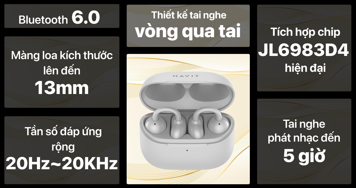 Tai nghe thể thao Havit OWS929 tích hợp nhiều công nghệ tiên tiến nhằm tối ưu hóa trải nghiệm cho người dùng trong các hoạt động thể chất. Hiệu suất âm thanh, thời lượng pin cho đến khả năng kết nối là những điểm nổi bật đã tạo nên giá trị khác biệt cho sản phẩm.
