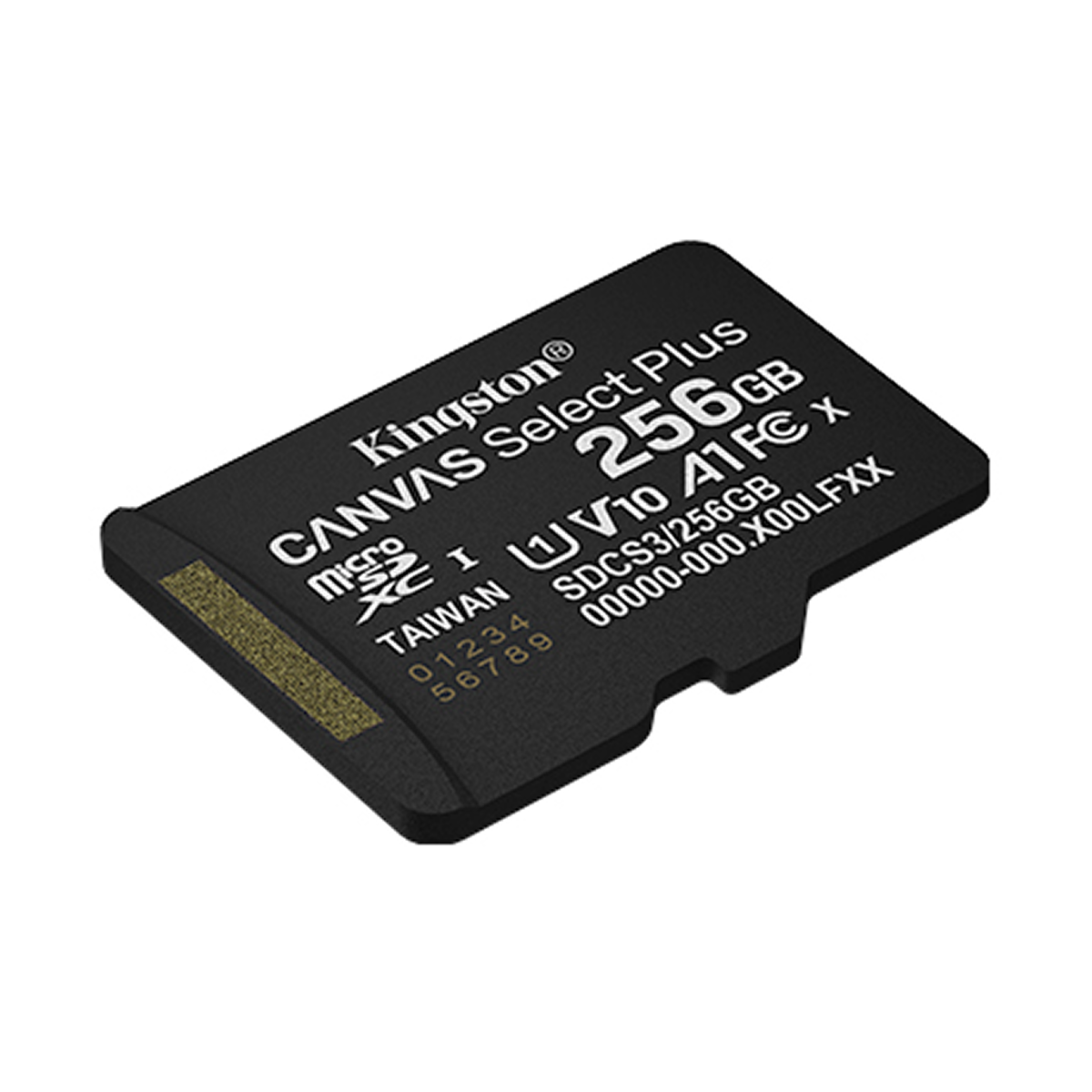 Thẻ nhớ MicroSD Kingston Canvas Select Plus 256GB (SDCS3) cung cấp không gian lưu trữ lớn, đáp ứng tốt nhu cầu lưu video FHD, hình ảnh và dữ liệu cá nhân. Với dung lượng 256GB, người dùng có thể lưu giữ hình ảnh và video trong suốt thời gian dài mà không cần lo lắng về việc phải xóa bớt dữ liệu định kỳ.