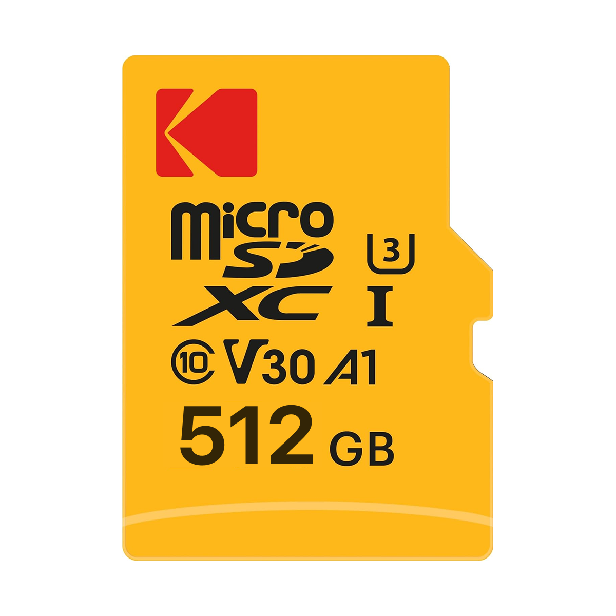 Thẻ nhớ MicroSD Kodak 512GB UHS-I U3/V30/A1 Adapter hỗ trợ lưu trữ số lượng lớn hình ảnh độ phân giải cao cùng các đoạn video chất lượng. Người sử dụng sẽ không còn phải lo lắng về việc nhanh chóng đầy bộ nhớ khi lưu trữ.