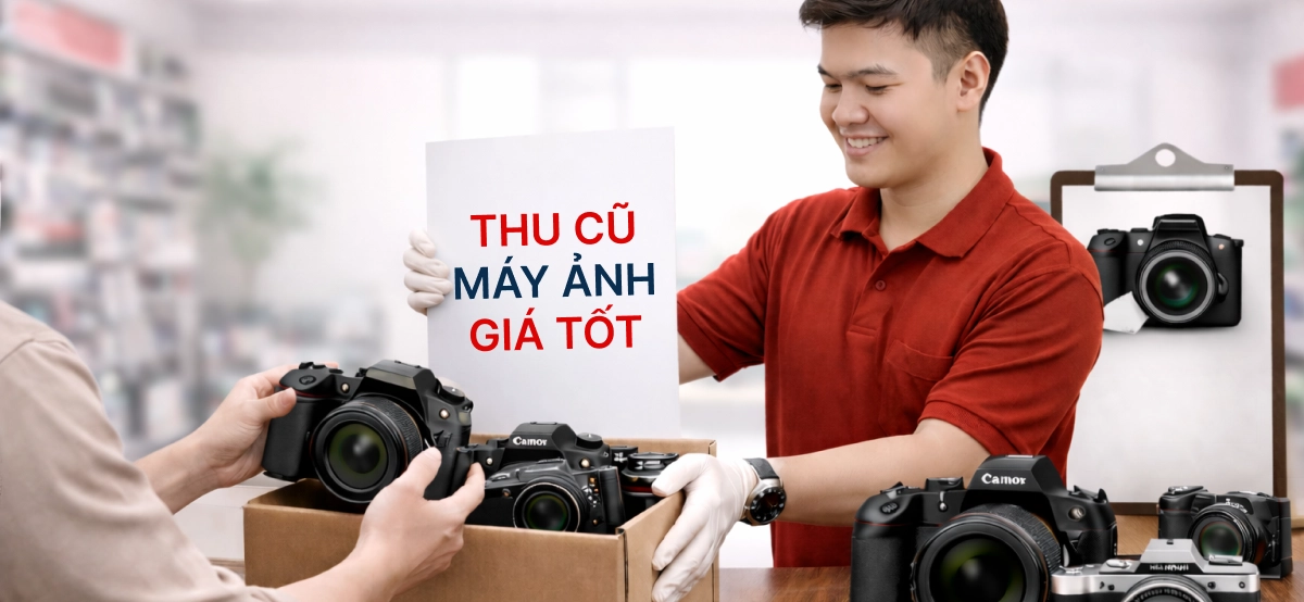 Bạn đang có máy ảnh không còn sử dụng hoặc muốn nâng cấp lên dòng máy mới hơn nhưng chưa biết xử lý thiết bị cũ như thế nào cho hợp lý? CellphoneS chính thức triển khai dịch vụ thu cũ máy ảnh, hỗ trợ khách hàng đổi máy nhanh gọn, giá rõ ràng và thuận tiện tại hệ thống cửa hàng trên toàn quốc.