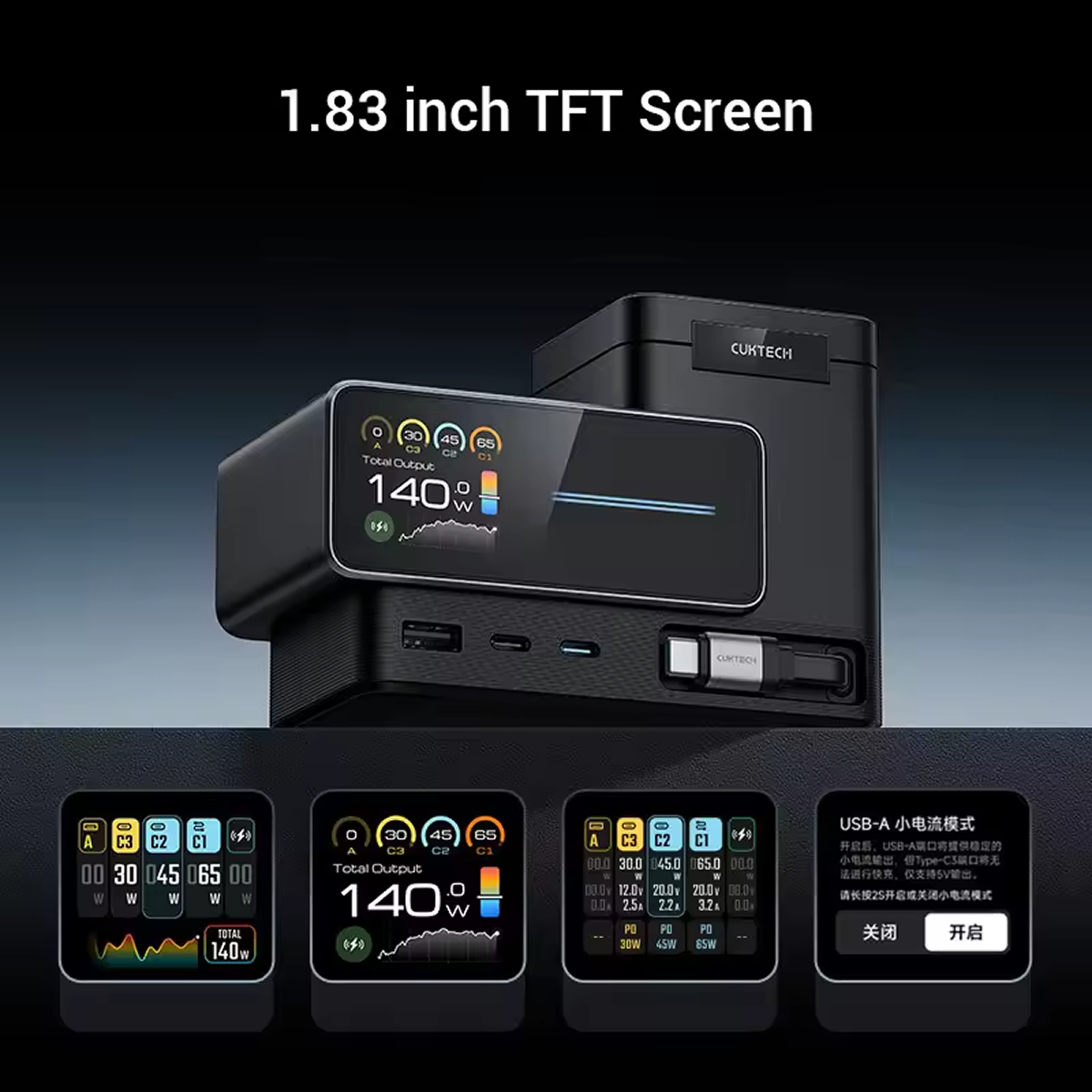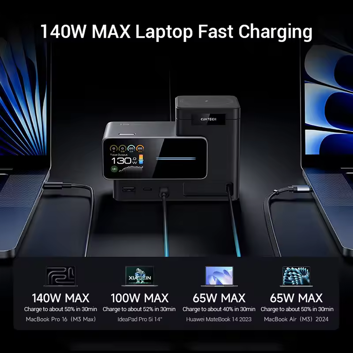 Trạm sạc Cuktech 15 6 in 1 màn hình Ultra GaN 140W TA1406U