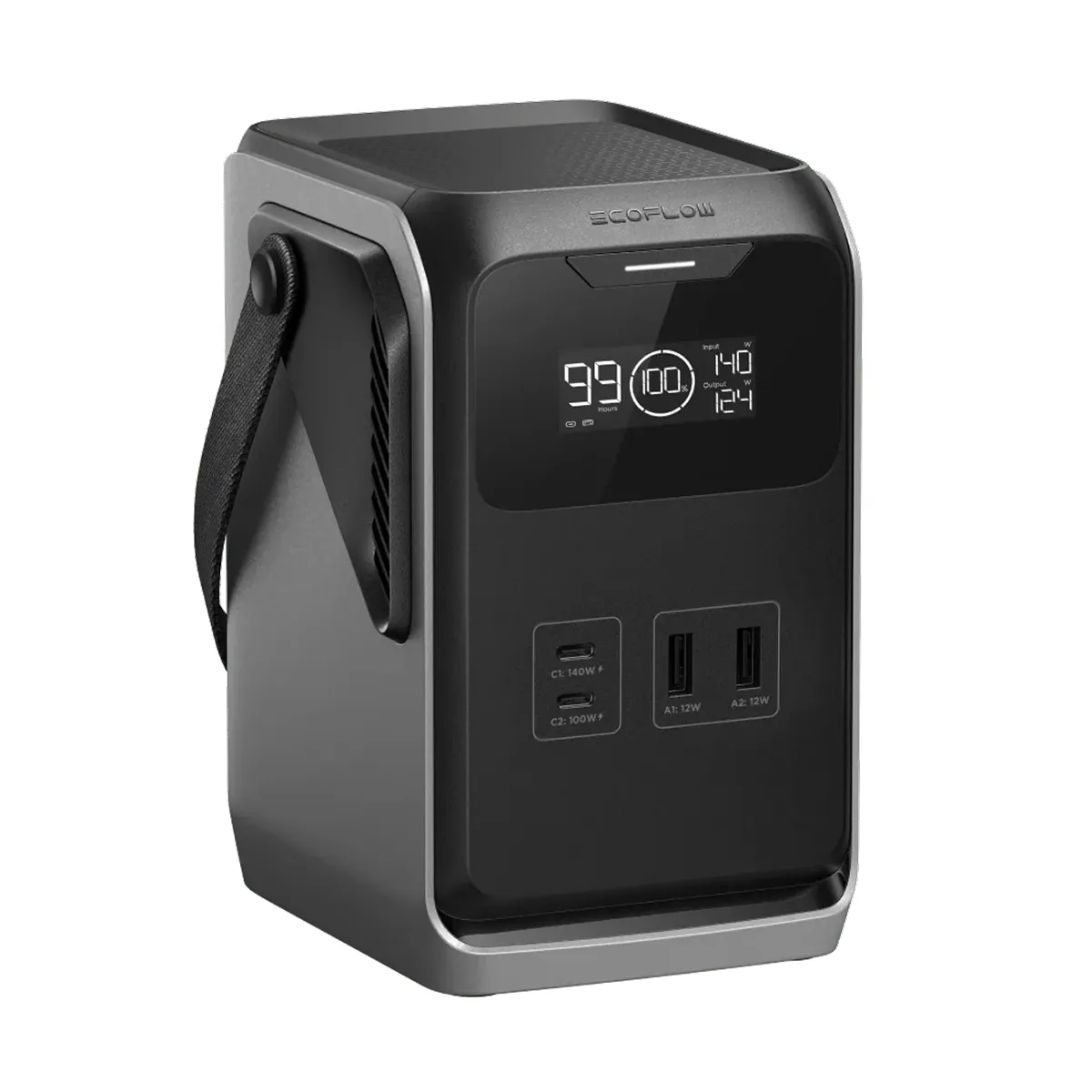 Sản phẩm trang bị 4 cổng sạc gồm 2 cổng USB-A 12W cho thiết bị công suất thấp và 2 cổng USB-C. Trong đó, trạm có một cổng sạc nhanh 140W và một cổng 100W (In/Out). Nhờ cấu hình cổng đa dạng, trạm sạc dự phòng Ecoflow Trail 200 DC 192Wh 220W có thể cấp điện ổn định cho nhiều thiết bị điện tử cùng lúc cực tiện lợi.