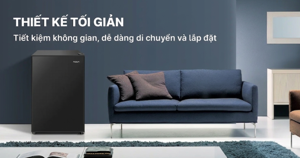 Tủ lạnh AQR-D100FA(BS) còn có thiết kế thanh lịch, dễ dàng hài hòa với nhiều kiểu không gian nội thất. Kích thước tủ khá gọn: chiều cao 76.9cm, chiều rộng 47cm và chiều sâu 44.4cm, giúp người sử dụng dễ dàng sắp xếp ở bất kỳ vị trí nào trong phòng.