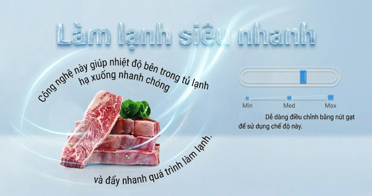 Nhờ cơ chế làm lạnh đa chiều, thực phẩm trong tủ luôn nhận đủ luồng khí mát ổn định. Người sử dụng sẽ không phải bận tâm về việc đồ ăn bị giảm chất lượng hay nhanh hư hỏng.