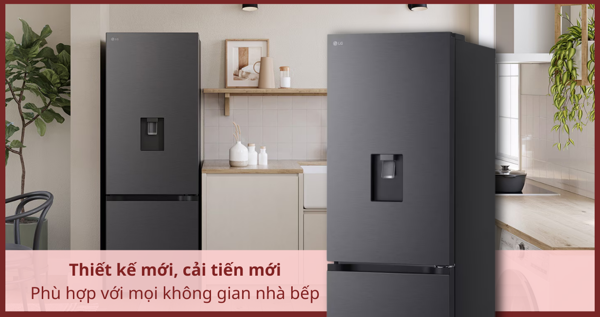 Không chỉ có hiệu suất mạnh mẽ, tủ lạnh LG Inverter LBD33BLM 332 Lít còn sở hữu thiết kế hiện đại, phù hợp với nhiều không gian bếp. Bề mặt cửa PCM của tủ được phủ màu đen lì tạo cảm giác sang trọng, dễ dàng vệ sinh.