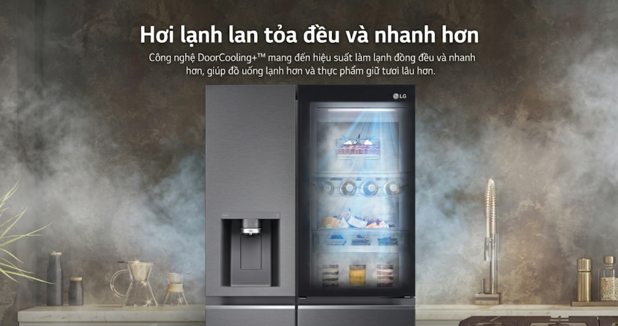 DoorCooling+ chính là giải pháp từ LG để giải quyết vấn đề thường gặp ở các tủ lạnh thông thường. Công nghệ này bổ sung thêm các cửa thoát khí lạnh ở phía cánh cửa tủ để thổi luồng khí lạnh trực tiếp vào khu vực này. Nhờ đó, thực phẩm được bảo quản ở cánh cửa cũng được làm lạnh nhanh chóng và duy trì nhiệt độ ổn định ngay cả khi cửa tủ thường xuyên được mở ra.