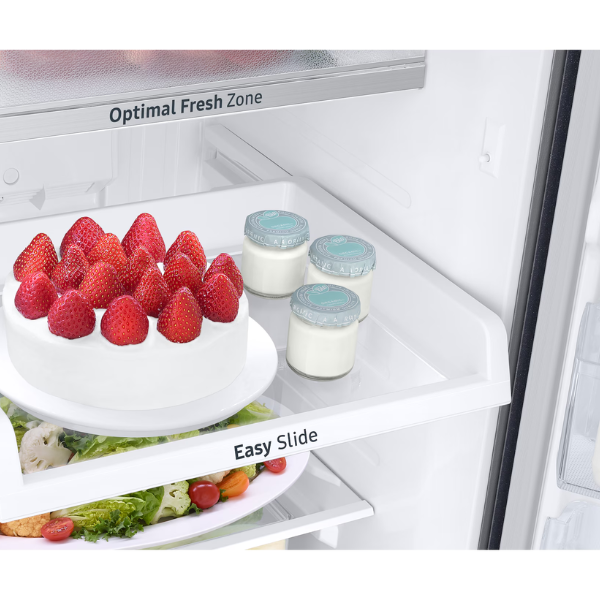 Bên trong tủ là hệ thống kính chịu lực hỗ trợ bố trí thực phẩm nặng như bình nước lớn. Cùng với đó, ngăn kéo Easy Slide cho phép trượt ra nhẹ nhàng, dễ tiếp cận thực phẩm ở sâu phía trong mà không cần di chuyển quá nhiều vật dụng. Thiết kế tổng thể ưu tiên sự tiện dụng, giúp quá trình sử dụng hằng ngày trở nên thuận lợi.