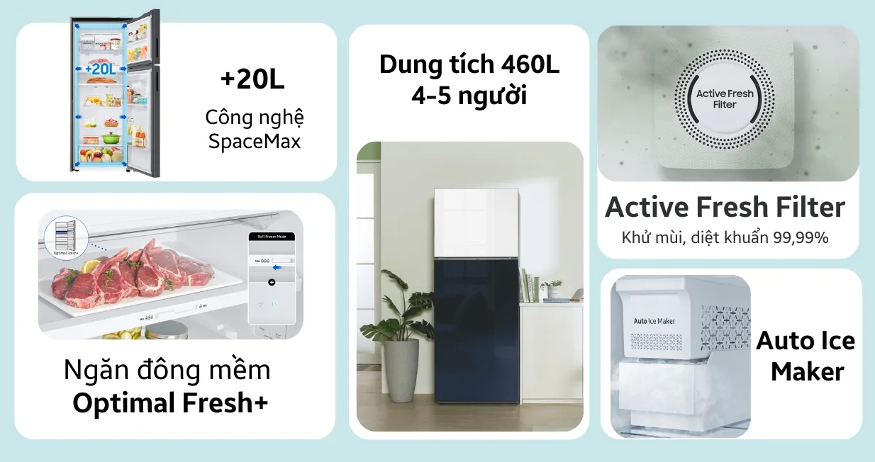 Giảm 500K khi thanh toán bằng thẻ tín dụng SacombankTủ lạnh Samsung Inverter Bespoke RT47CB66868ASV 460 lít là lựa chọn lý tưởng với thiết kế phẳng tinh tế, mặt kính sang trọng mang đến vẻ hiện đại. Mẫu tủ lạnh Samsung này có dung tích 460 lít, công nghệ làm lạnh tiên tiến và khả năng tiết kiệm điện hiệu quả. Tủ lạnh còn tích hợp nhiều tiện ích thông minh như làm đá tự động, kết nối SmartThings và ngăn đông mềm linh hoạt.