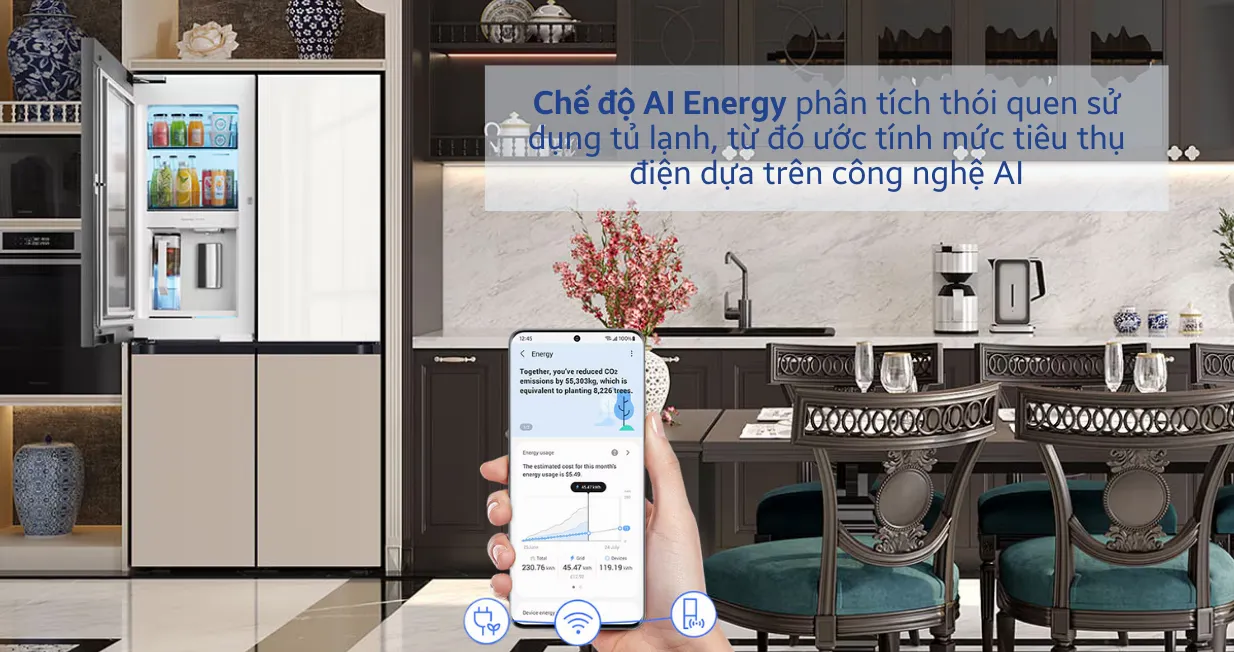 Dung tích này được phân bổ khoa học giữa các ngăn, giúp tối ưu không gian bảo quản. Hơn thế nữa, quầy Minibar Beverage Center của tủ còn được thiết kế riêng biệt để lưu trữ và lấy đồ uống nhanh chóng. Ngoài ra, hệ thống đèn LED trong tủ còn có khả năng chiếu sáng đồng đều khắp các ngăn, giúp người dùng dễ quan sát và lấy thực phẩm ngay cả trong điều kiện thiếu sáng.