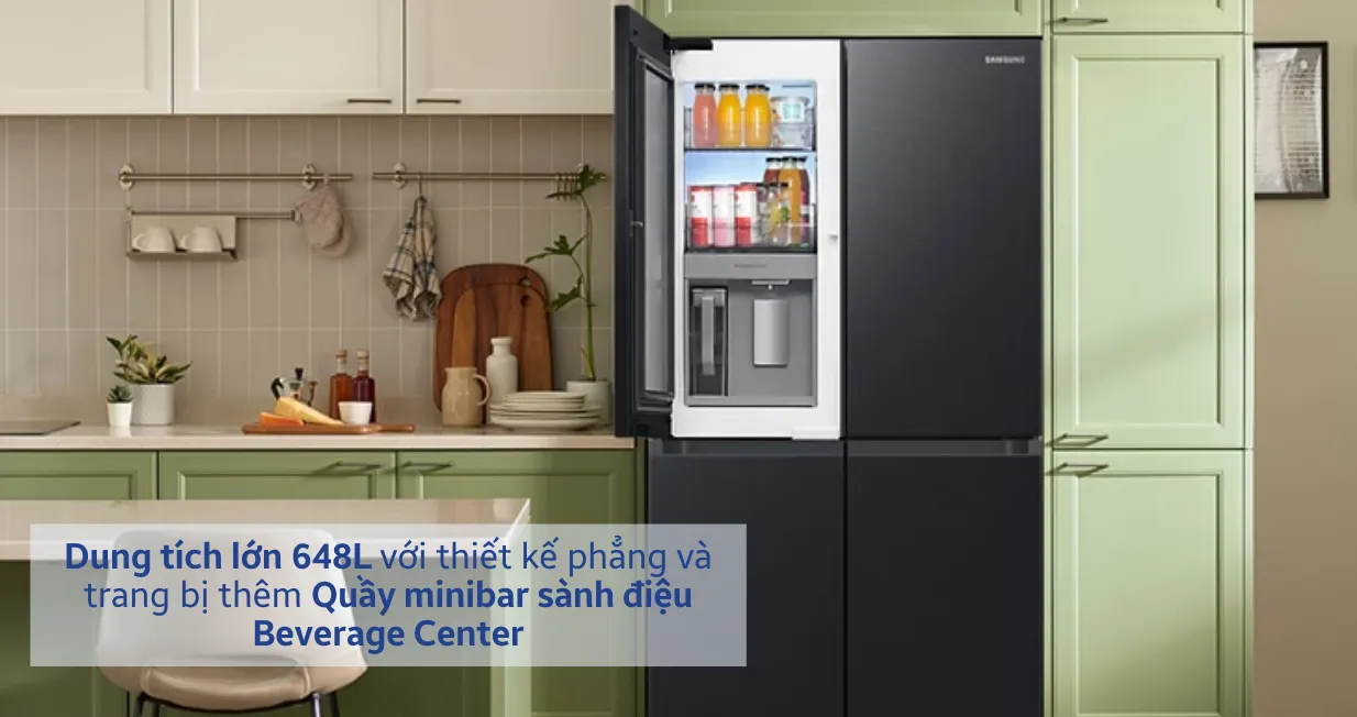 Tủ lạnh Samsung Inverter Multidoor RF59C766FB1/SV 648 lít sở hữu dung tích lên đến 648 lít. Nhờ đó, thiết bị gia dụng này mang đến giải pháp lưu trữ tối ưu cho những gia đình đông người.