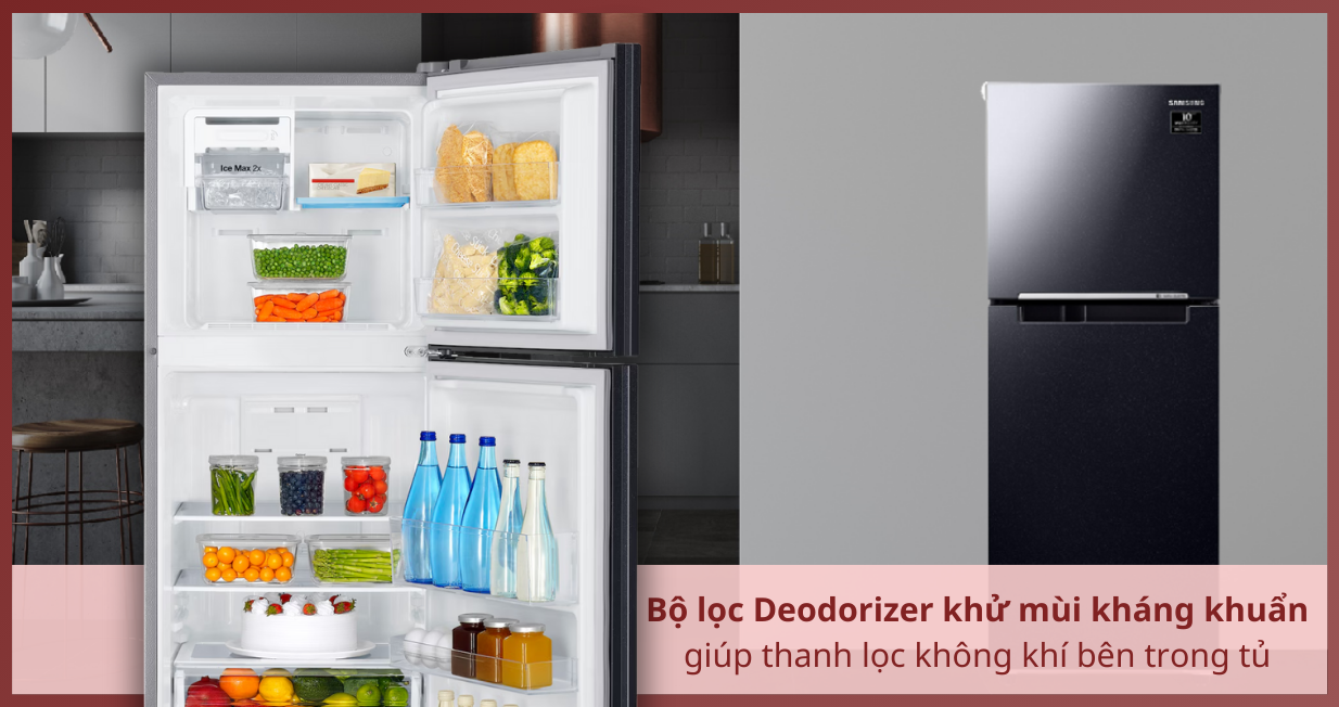 Ngoài ra, tủ lạnh Samsung Inverter RT20HAR8DBU/SV 208 Lít còn được trang bị bộ lọc than hoạt tính Deodorizer, giúp tủ lạnh có thể kháng khuẩn cũng như khử mùi tốt. Người dùng không còn lo ngại thức ăn bị nhiễm khuẩn hoặc có mùi trong quá trình cất trữ.