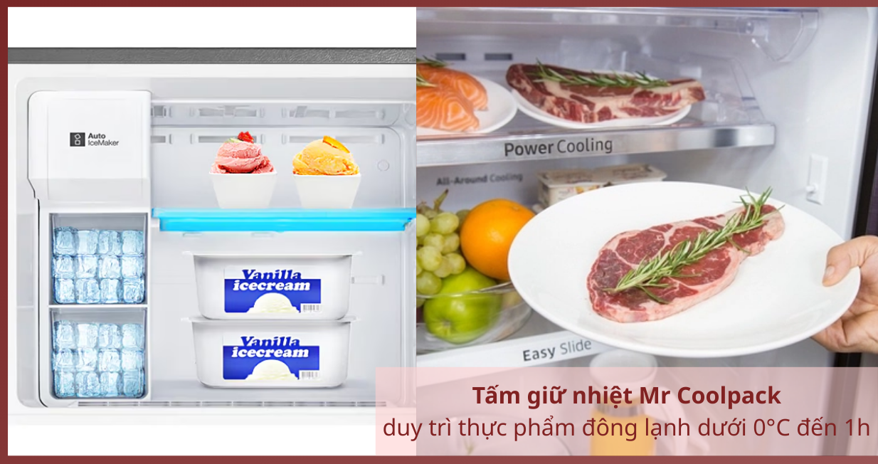 Sở hữu hệ thống làm lạnh đa chiều và ngăn Cool Pack bảo quản thực phẩm, tủ lạnh Samsung Inverter 208 Lít giúp đảm bảo làm lạnh đều và ổn định cho mọi loại thức ăn. Đặc biệt, với những rau củ có kích thước lớn mà người dùng chưa thể sơ chế, ngăn giữ ẩm Big Box sẽ giúp bạn cất trữ chúng luôn tươi mới, mọng nước.