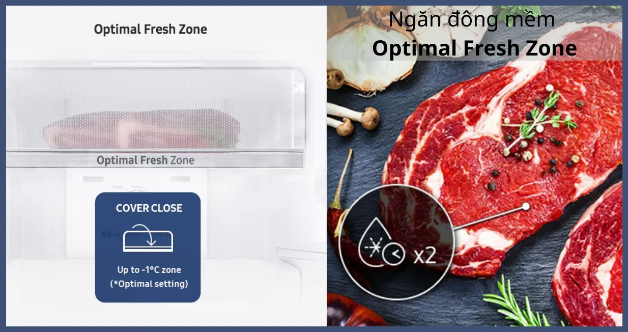 | Công nghệ bảo quản thực phẩm | Ngăn đông mềm -1 độ C Optimal Fresh Zone |