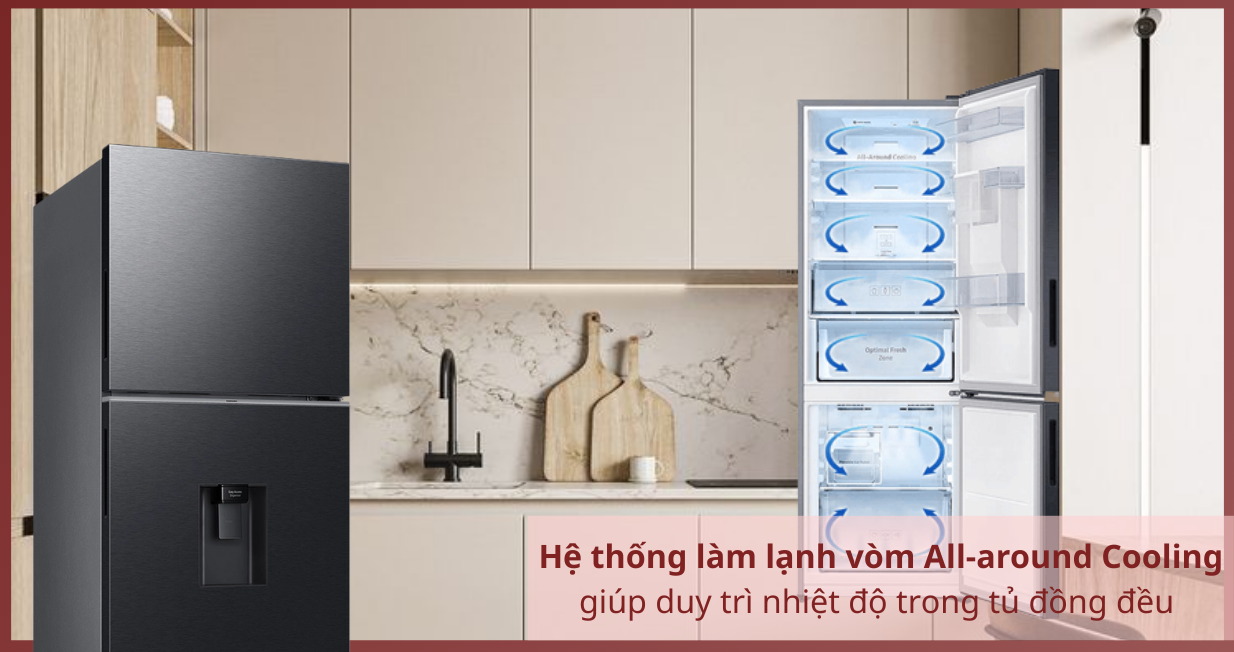 Công nghệ SpaceMax tối ưu dung tích bên trong tủ lạnh mà không ảnh hưởng đến kích thước bên ngoài. Nhờ lớp cách nhiệt hiệu suất cao, tủ có vách ngăn siêu mỏng nhưng vẫn giữ được khả năng làm lạnh tối ưu. Điều này giúp lưu trữ nhiều đồ hơn mà vẫn đảm bảo sự gọn gàng và tiện lợi trong gian bếp.