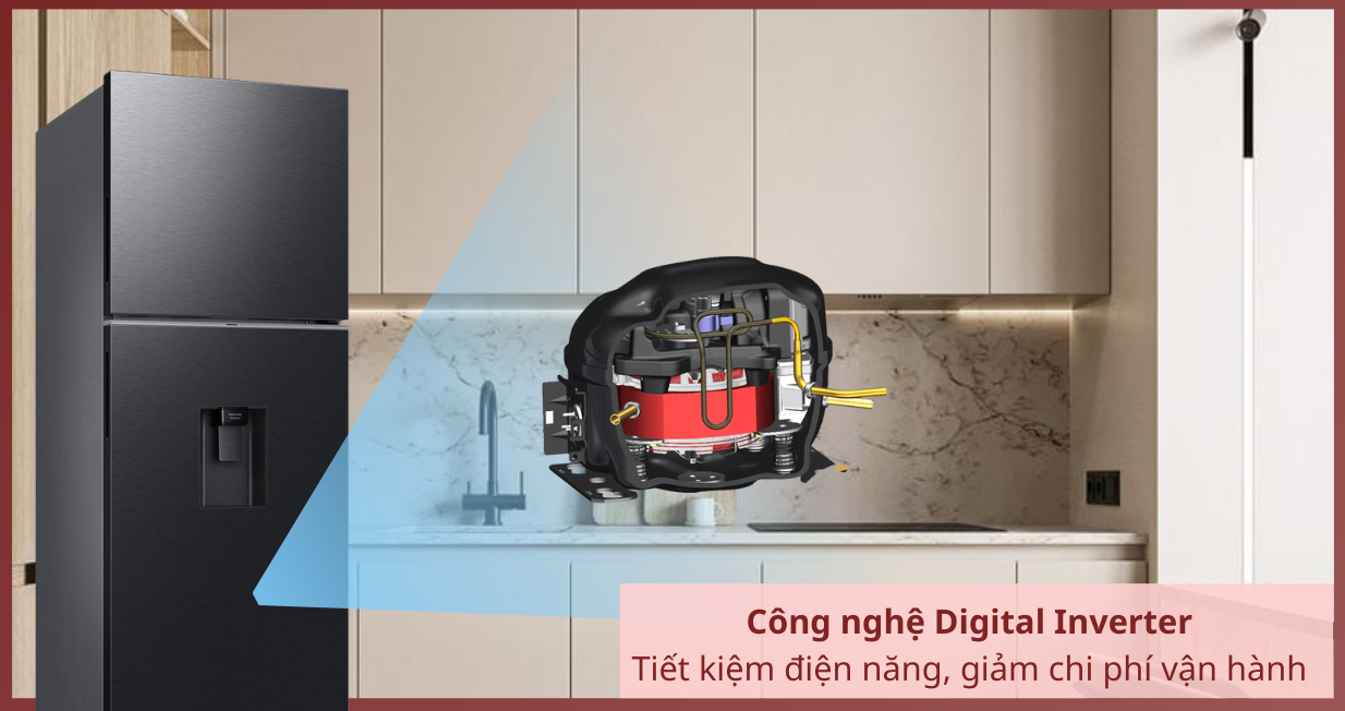 Tủ lạnh Inverter RT35CG5544B1SV 345 lít được trang bị máy nén Digital Inverter, có khả năng tự động điều chỉnh công suất làm lạnh theo nhu cầu sử dụng. Nhờ vậy, lượng điện tiêu thụ giảm đến 50% so với các mẫu tủ lạnh truyền thống. Điều này không chỉ giúp tối ưu hóa chi phí hàng tháng mà còn kéo dài vòng đời của sản phẩm.