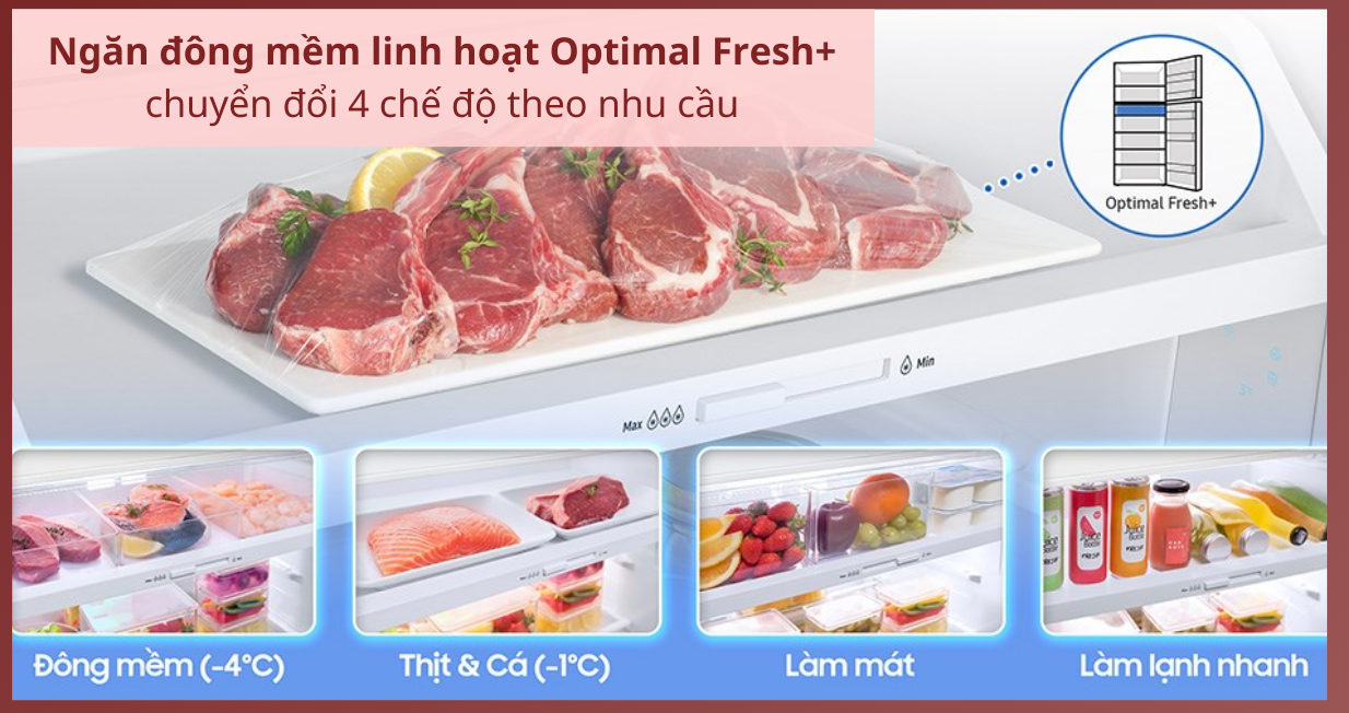 | Công nghệ bảo quản thực phẩm | Ngăn đông mềm linh hoạt 4 chế độ Optimal Fresh+ |
