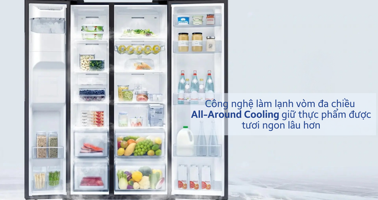 Công nghệ làm lạnh All-Around Cooling giúp duy trì nhiệt độ ổn định, bảo quản thực phẩm tốt hơn