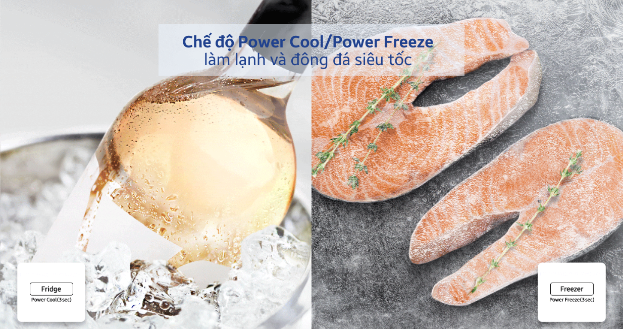 Chế độ làm lạnh nhanh Power Cool và làm đông nhanh Power Freeze tiện lợi khi cần bảo quản thực phẩm gấp