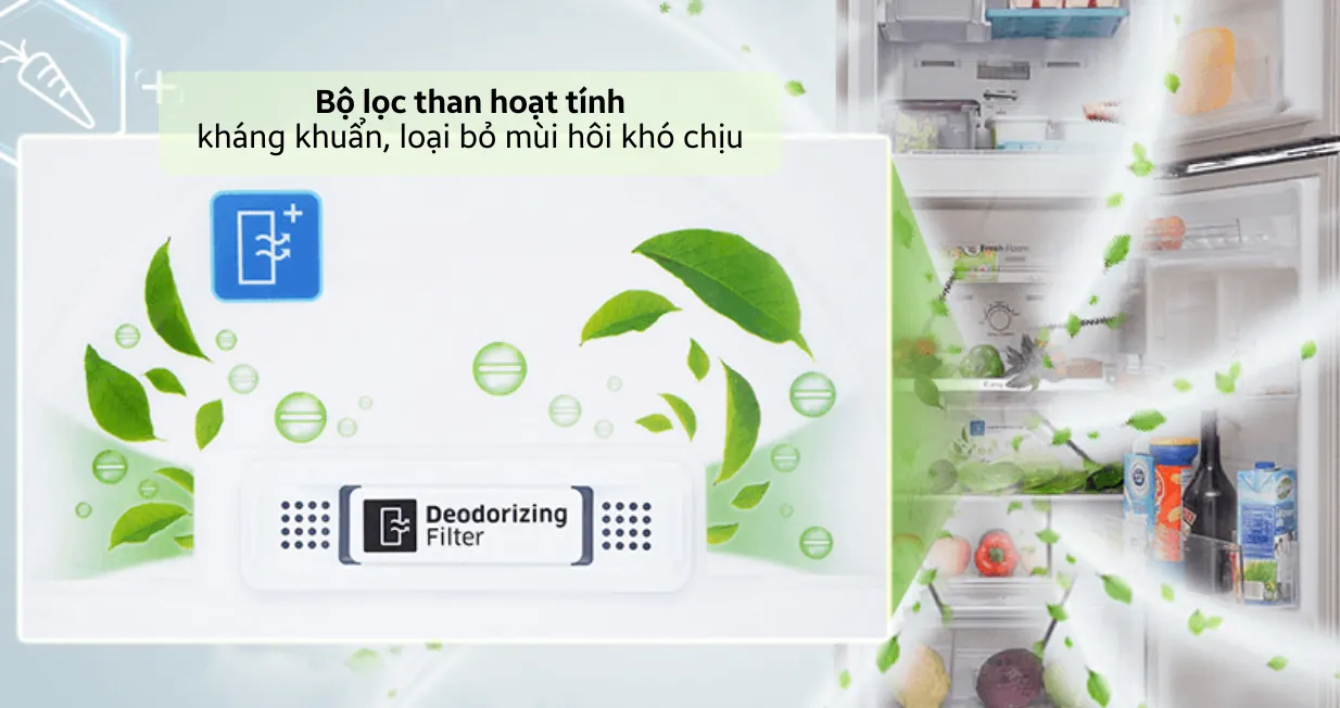 Tích hợp bộ lọc carbon hoạt tính giúp khử mùi thức ăn khó chịu, giữ nguyên vẹn hương vị cho thực phẩm.
