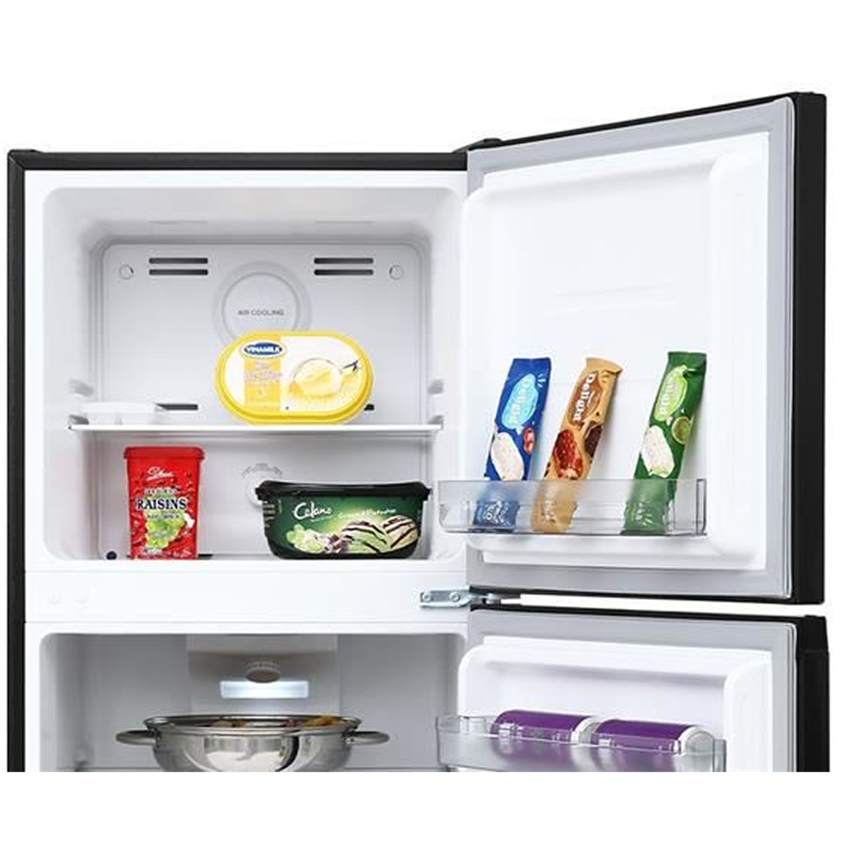 Ngoài ra, hệ thống khay kính chịu lực bền chắc trong sản phẩm còn hỗ trợ người sử dụng lưu trữ nhiều loại thực phẩm với khối lượng lớn. Các ngăn phụ lắp đặt tại cửa tủ cũng góp phần gia tăng đáng kể không gian lưu trữ để người dùng có thể tự do sắp xếp các loại chai lọ và đồ dùng gọn gàng hơn.