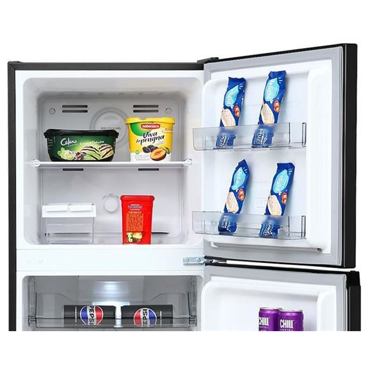 Tủ lạnh sở hữu kiểu dáng ngăn đá trên truyền thống với gam màu đen sang trọng, dễ dàng hòa hợp mọi nội thất. Chất liệu cửa tủ bằng kim loại bền bỉ không chỉ tạo độ thẩm mỹ mà còn giúp giảm trầy xước hiệu quả.