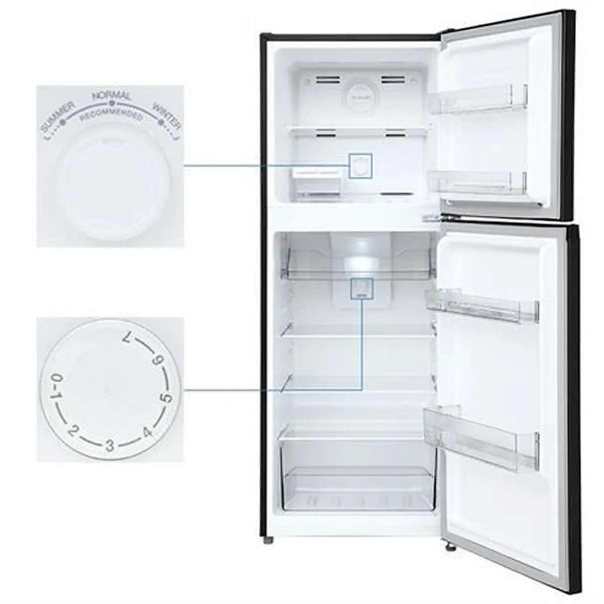 Hệ thống điều khiển điện tử được tích hợp bên trong tủ giúp người dùng dễ dàng thao tác và tùy chỉnh các mức nhiệt độ. Mọi thiết lập về độ lạnh đều được kiểm soát chính xác nhằm duy trì hiệu suất vận hành ổn định và nâng cao hiệu quả bảo quản thực phẩm.