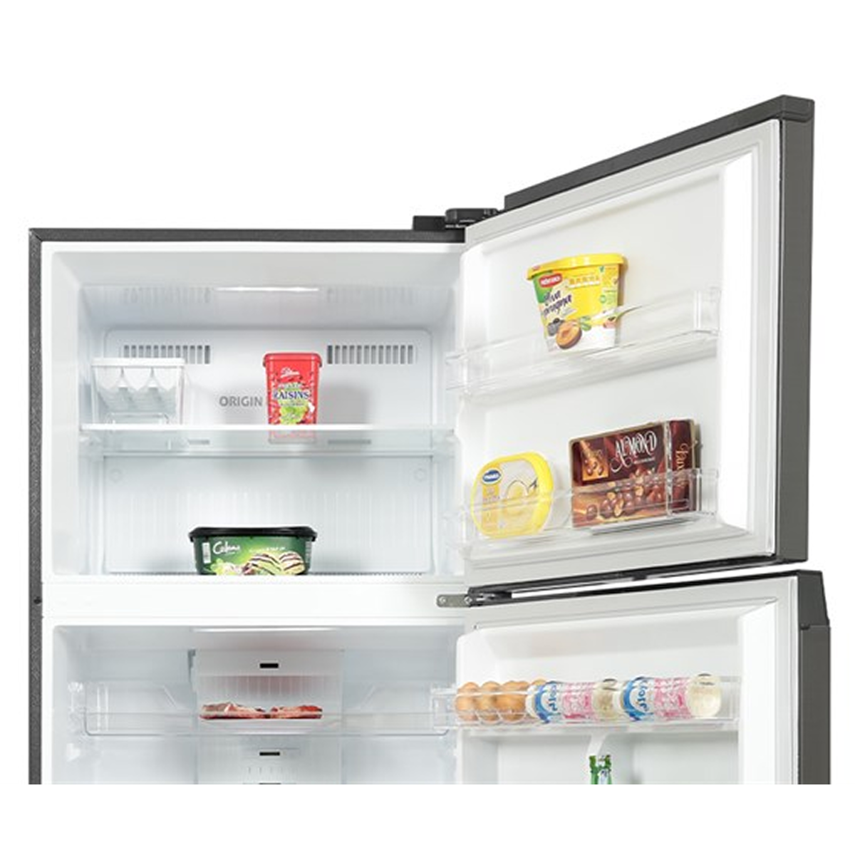 Tủ lạnh Toshiba Inverter 411 lít (GR-RT559WE-PMV(58)-MM) phù hợp với gia đình khoảng 4–5 thành viên với không gian rộng đến 411 lít. Cấu trúc ngăn đá trên và ngăn lạnh dưới giúp phân tách rõ khu vực bảo quản thực phẩm đông lạnh và thực phẩm tươi.