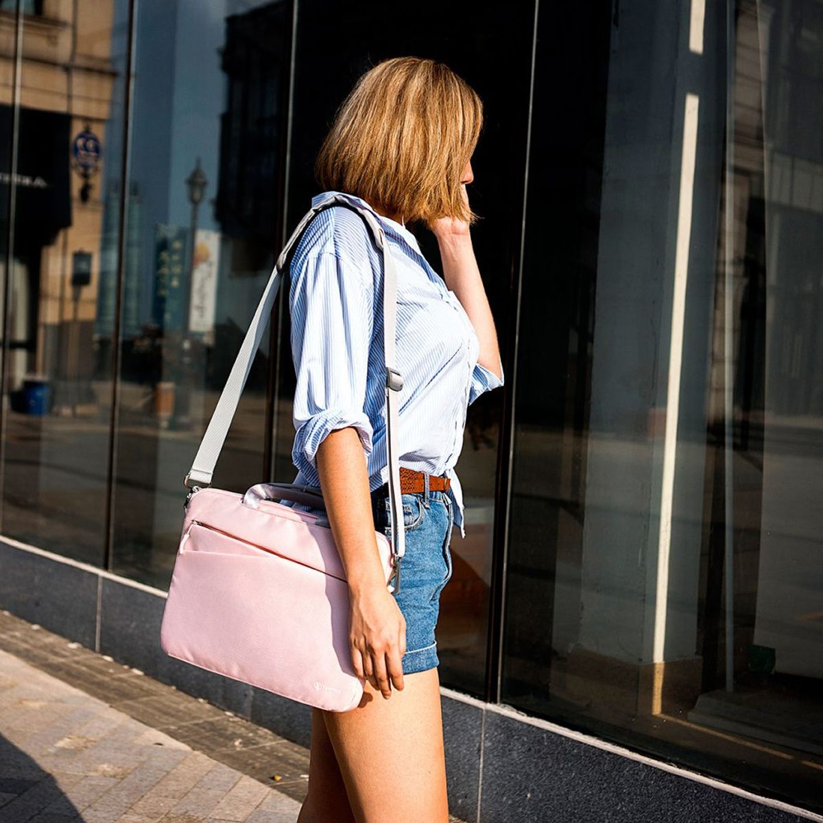 Túi chống sốc có dây Tomtoc Messenger Bags 14 inch A45 C01C DRS hỗ trợ hai cách mang theo tùy theo nhu cầu. Người dùng có thể xách tay qua quai cầm hoặc đeo chéo với dây đeo mềm mại và có thể điều chỉnh thoải mái. Ngoài ra, túi cũng có hai quai dọc ở sau để gắn vào tay kéo vali, tạo thuận lợi khi đi công tác hay du lịch.