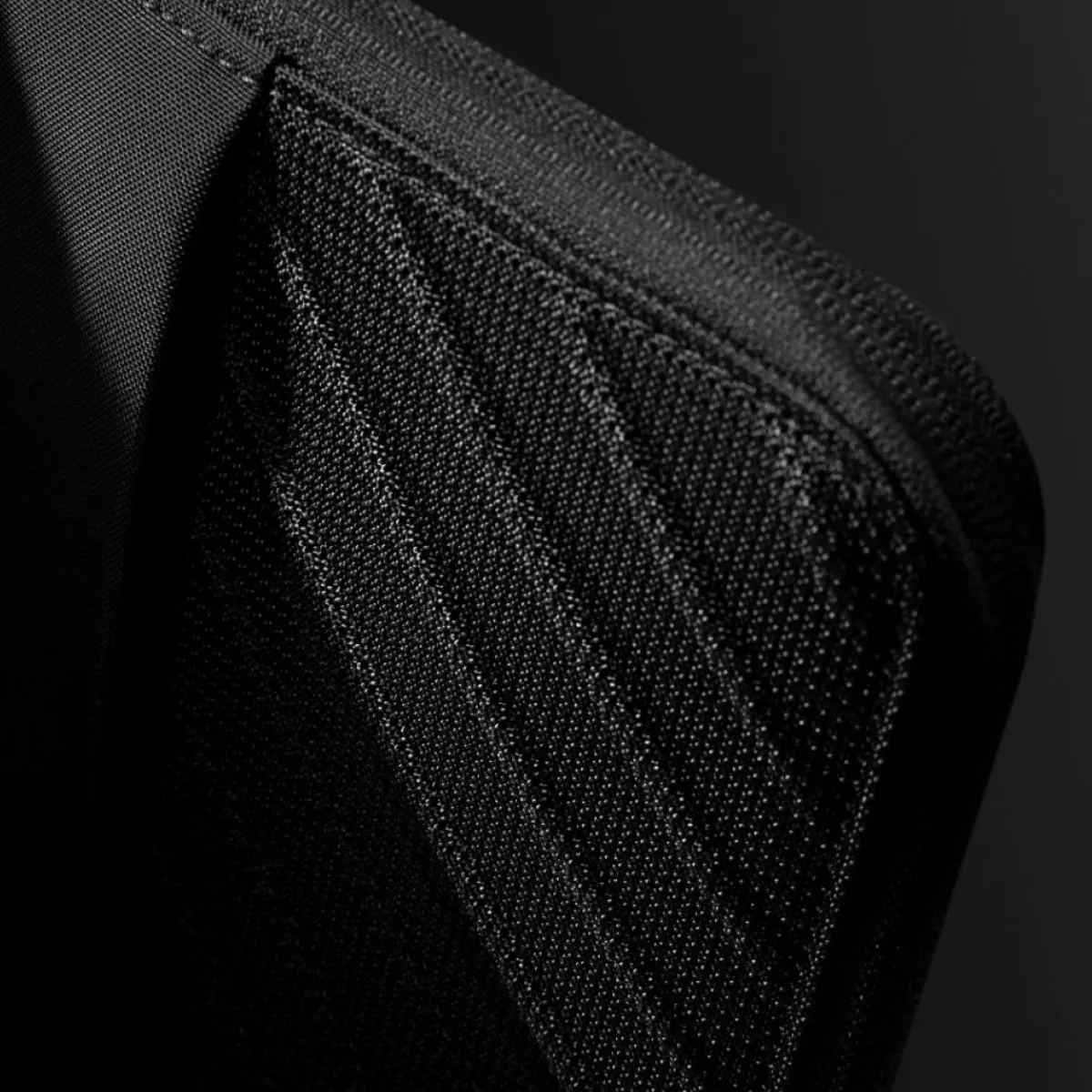 Phần vỏ ngoài sử dụng chất liệu Nylon Cordura 420D có độ bền cao và khả năng chống nước tốt, đảm bảo độ ổn định trong thời gian dài. Thiết kế mở hai bên giúp người dùng có thể thao tác lấy và cất laptop nhanh chóng.