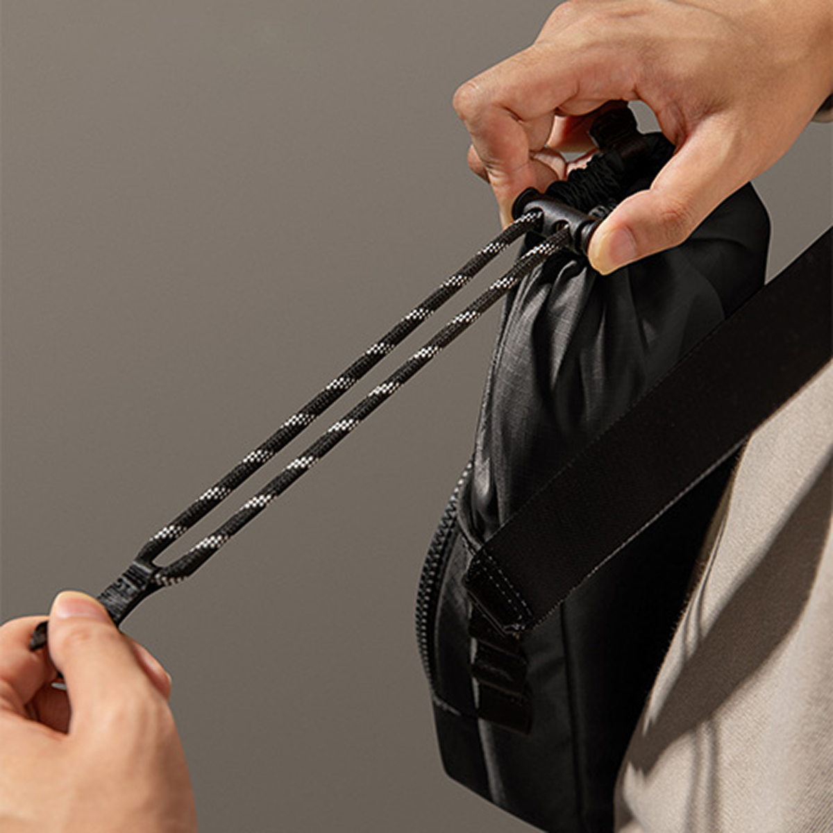 Túi sử dụng cơ chế dây rút trên bề mặt vải
