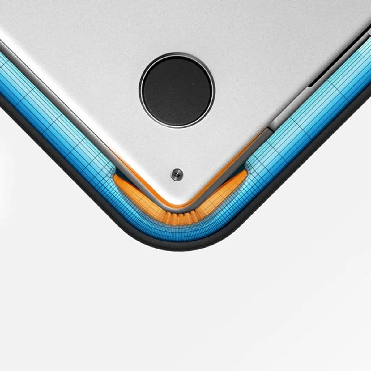 Điểm đáng chú ý của túi xách chống sốc TOMTOC DEFENDER A22 BRIEFCASE 13 inch USA chính là lớp đệm CornerArmor tại các góc máy. Thiết kế này tạo ra một vùng đệm đàn hồi cao, giúp hấp thụ xung lực trực tiếp khi xảy ra sự cố rơi rớt theo tiêu chuẩn MIL-STD-810H.