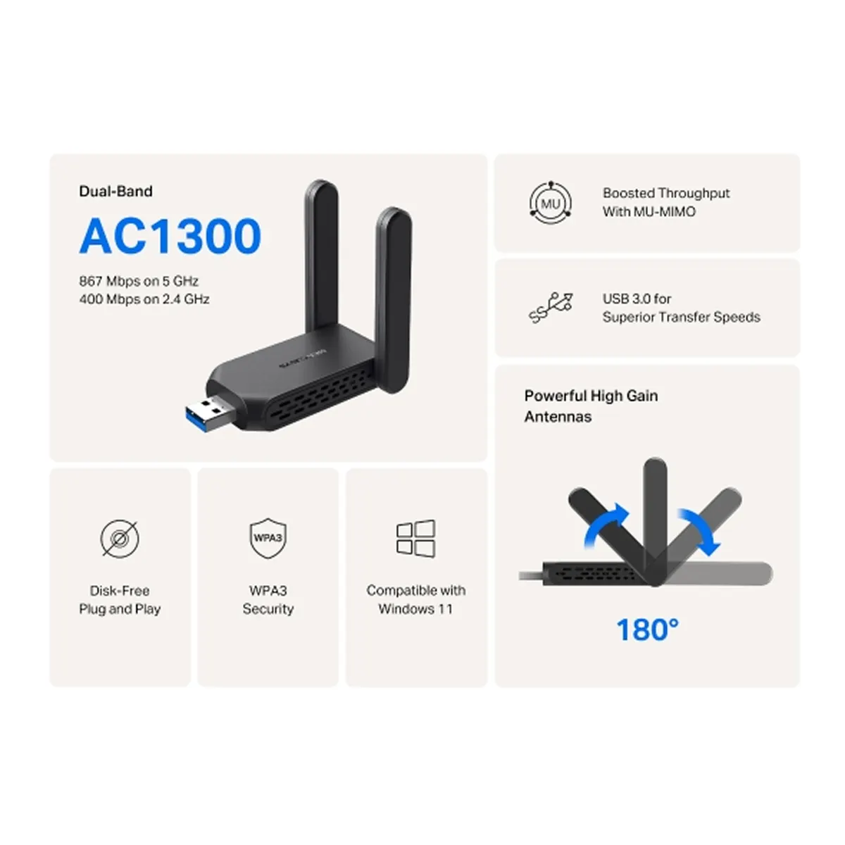 USB WiFi Mercusys MA32H AC1300 - Nhỏ gọn, hiệu năng cao