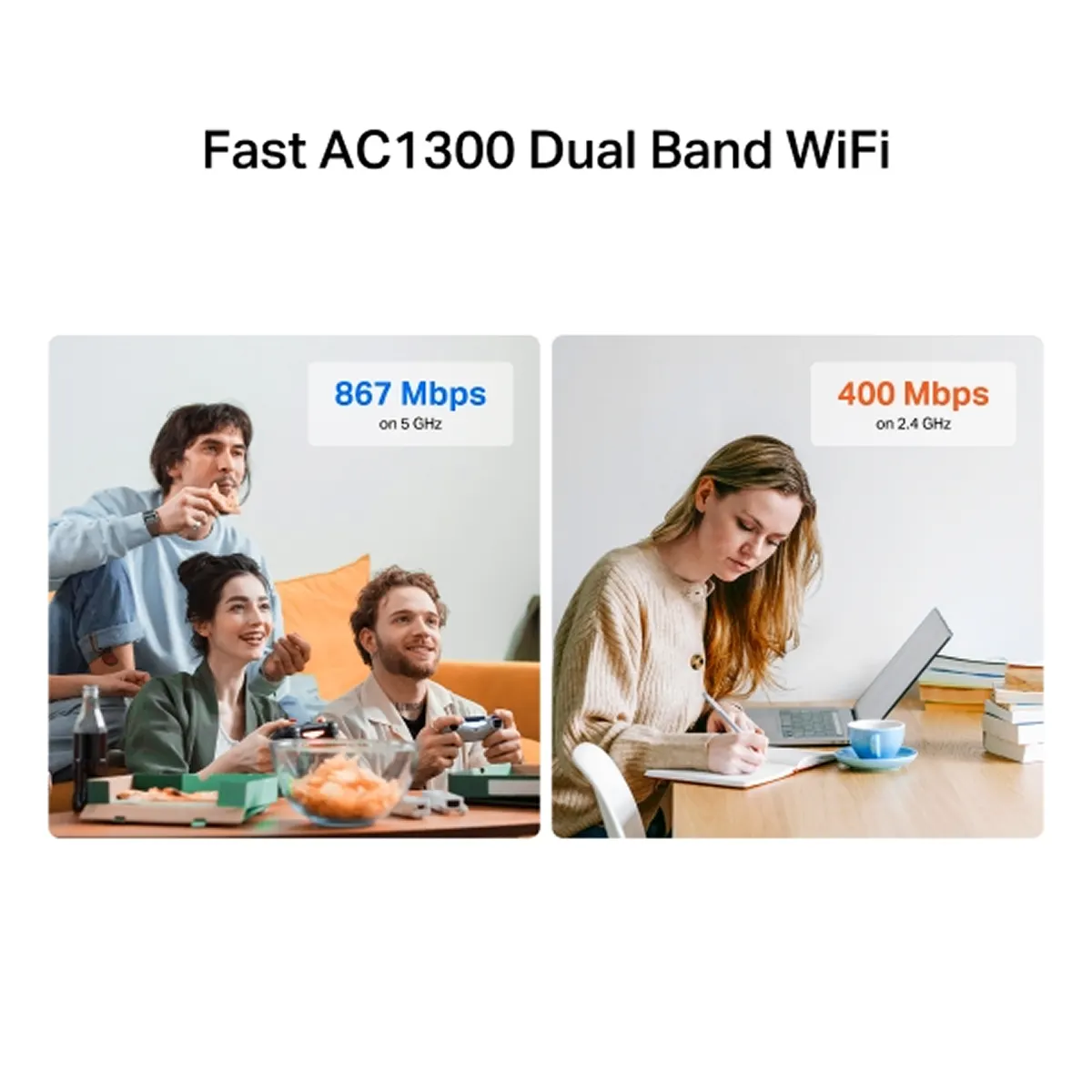 Mercusys MA32H AC1300 giải pháp ổn định và tăng tốc WiFi hiệu quả. Hỗ trợ người dùng làm việc từ xa, học online, chơi game, xem video 4K mượt mà chỉ với một thao tác.