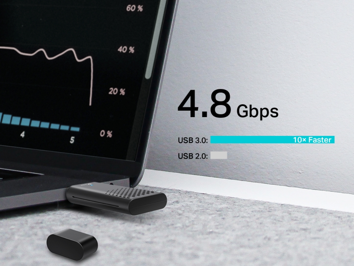 Cổng kết nối USB 3.0, USB Wifi TP-Link Archer TX20U AX1800 cho phép truyền dữ liệu nhanh hơn tới 10 lần so với USB 2.0, giúp bạn trải nghiệm truyền dữ liệu cực nhanh và mượt mà.