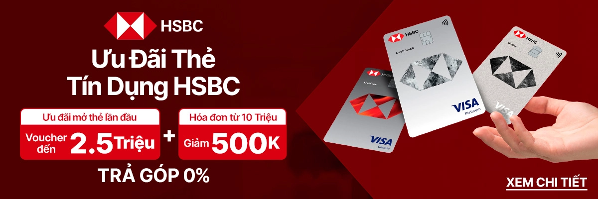 GIẢM 500.000VNĐ KHI THANH TOÁN BẰNG THẺ TÍN DỤNG HSBC
