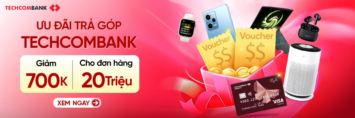 - Giảm 700K khi trả góp đơn hàng từ 20 triệu trở lên qua thẻ tín dụng Techcombank
