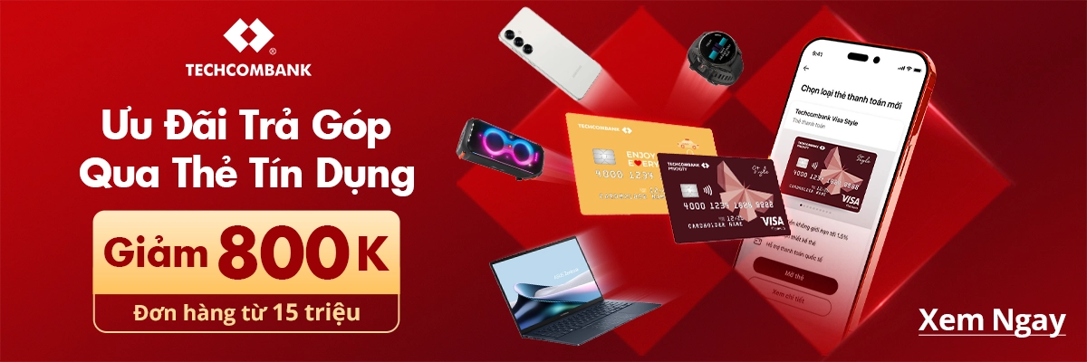 ƯU ĐÃI GIẢM 800K KHI TRẢ GÓP LIÊN KẾT TRỰC TIẾP QUA THẺ TÍN DỤNG TECHCOMBANK