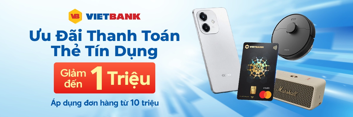 - Chỉ áp dụng cho khách hàng thanh toán 100% giá trị đơn hàng qua thẻ tín dụng Vietbank