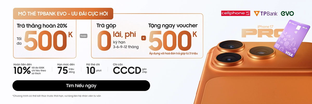 ƯU ĐÃI MỞ THẺ TPBANK EVO TẠI CELLPHONES - ƯU ĐÃI GIẢM ĐẾN 500.000VNĐ