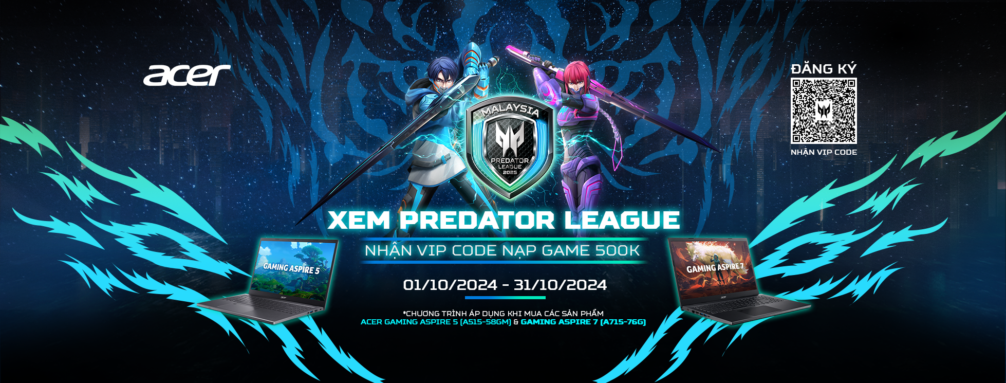 Cụ thể từ ngày 01/10/2024 đến hết 31/10/2024, Khách Hàng khi mua các dòng Laptop Gaming Aspire 7 (A715-76G) và Gaming Aspire 5 (A515-58GM) tại các đại lý chính hãng Acer Việt Nam sẽ được đăng ký thông tin để nhận ngay 1 Code VIP nạp Game trị giá 500.000 VNĐ (thẻ Zing – áp dụng cho các tựa game từ nhà phát hành VNG như: Valorant, Liên Minh Huyền Thoại,...).